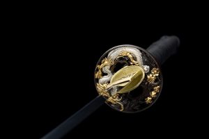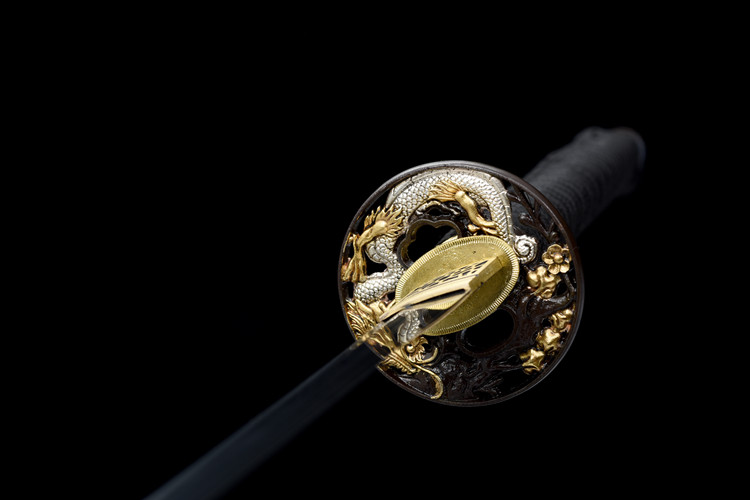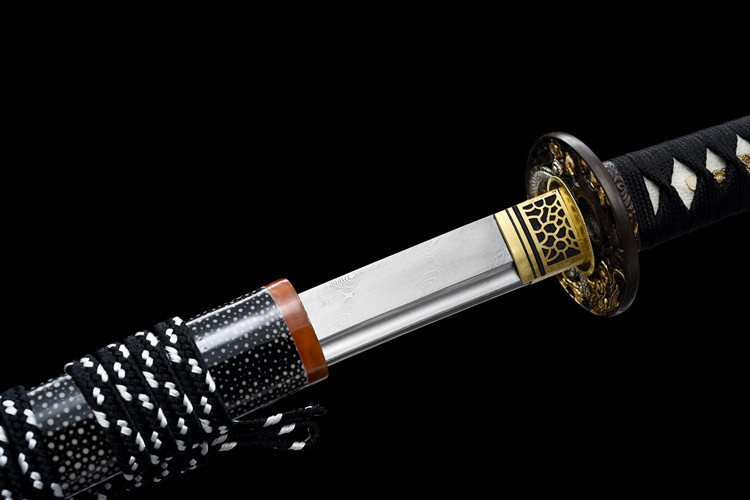 Upon pure copper fittings, the divine crafts of gilding and silver inlay are applied. Gold and silver threads traverse the copper, depicting thunderclouds, dragon scales, or archaic sigils, at once dazzling and profound. The scabbard of wood sheathed in rare ray skin mimics the texture of rain-lashed water, while the cord-wrapped wood hilt ensures the thunderous power is perfectly harnessed in every swift strike.