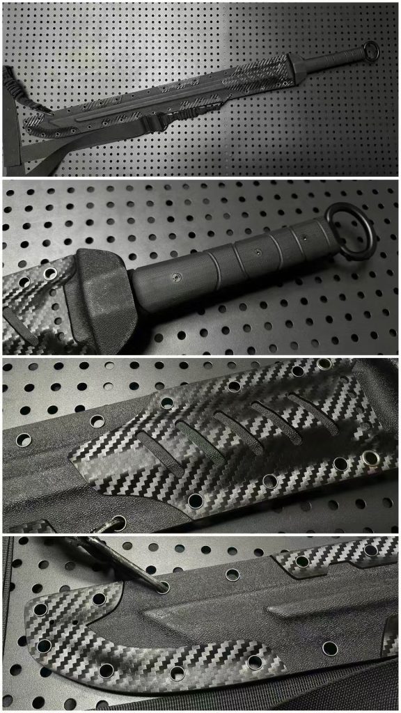 Fitted with a CNC-machined stainless steel guard and a lightweight dual-color spliced Kydex sheath for secure, rapid access. Expertly balanced at just 0.95 kg (blade only) with a total system weight of 1.27 kg, it achieves remarkable agility within its 84 cm frame.