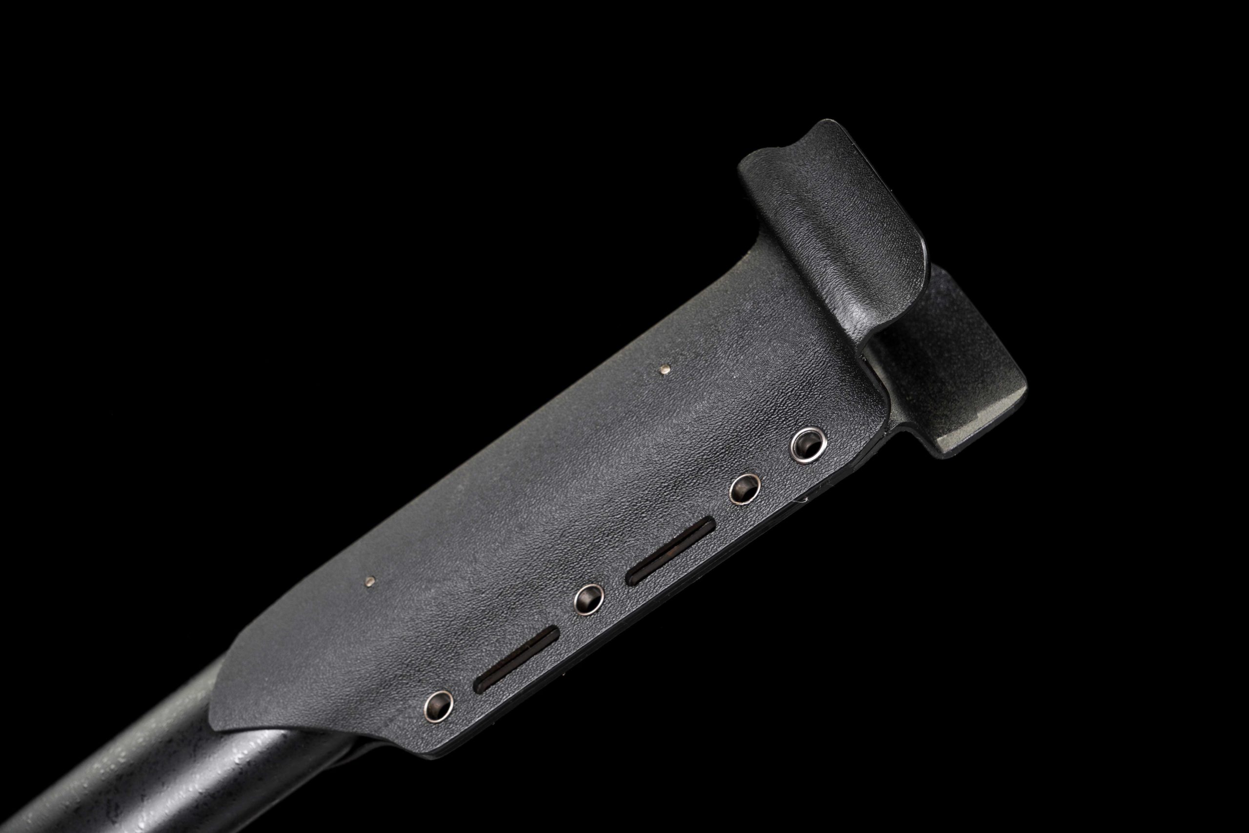 The blade, forged from carbon steel, is clad in a titanium coating. This provides not only a tactical black finish but also a technological armor granting superior rust and scratch resistance, ensuring enduring performance in harsh conditions.