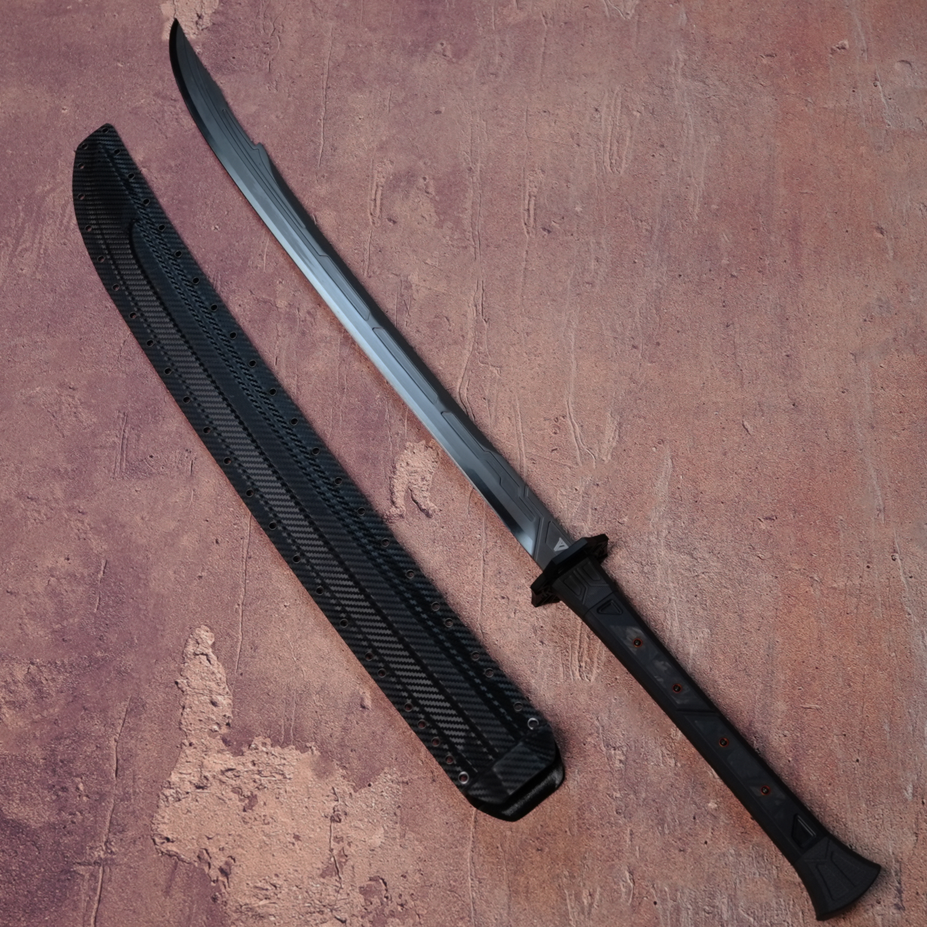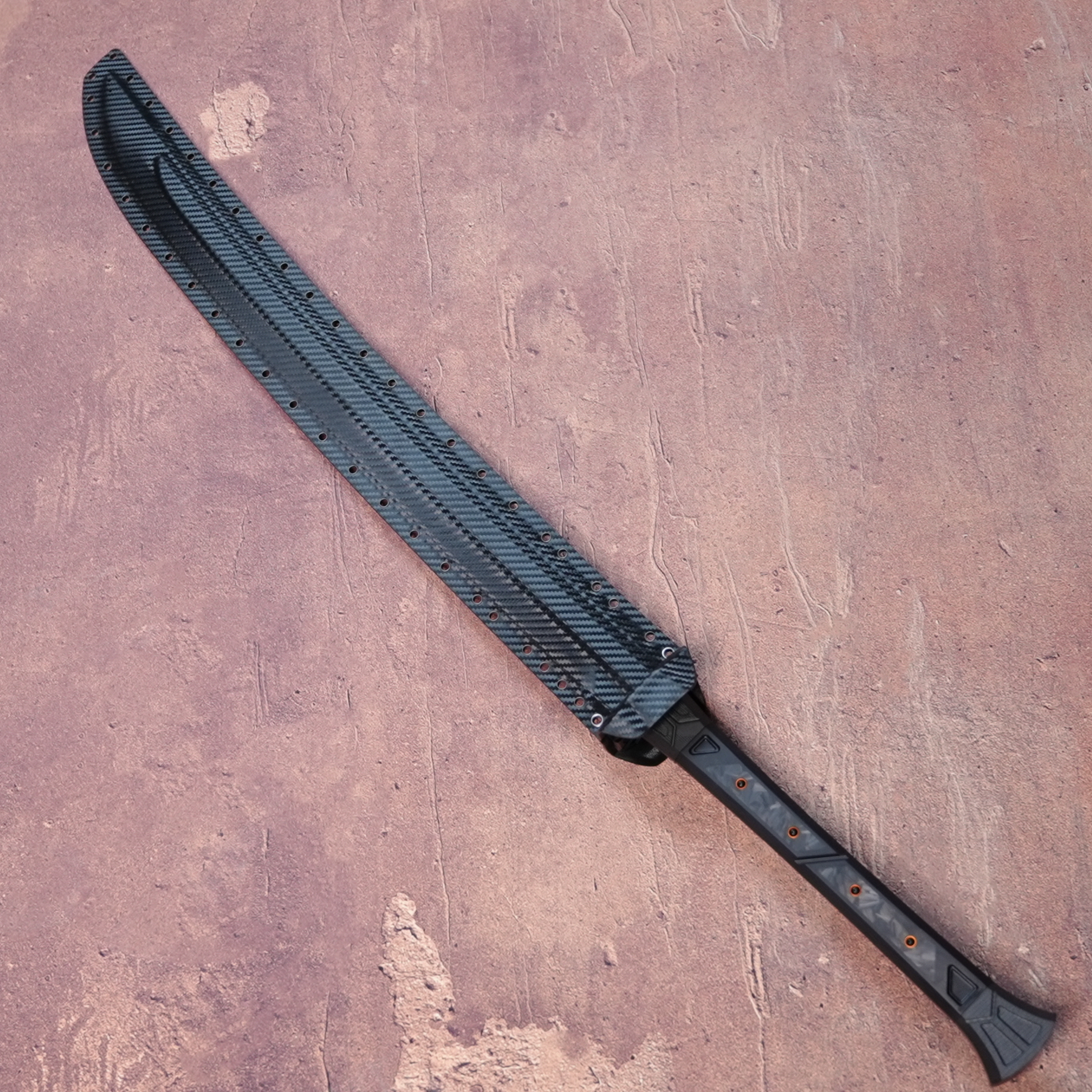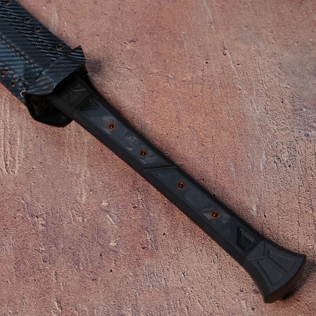 Constructed with a 7075 aerospace aluminum guard and a 2.0 mm carbon fiber Kydex sheath, it achieves systematic lightweighting. The blade alone weighs 1.54 kg for agile maneuverability, while the total system weight of 1.92 kg ensures ready carry and rapid deployment.