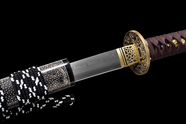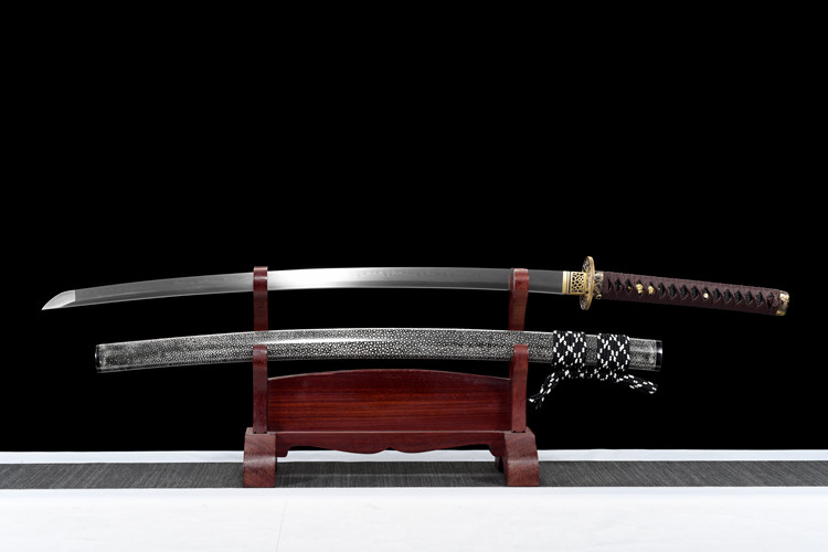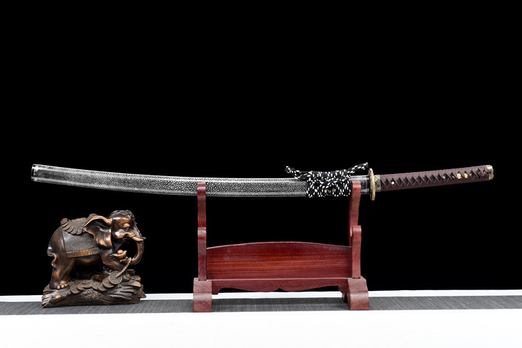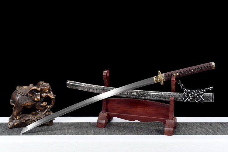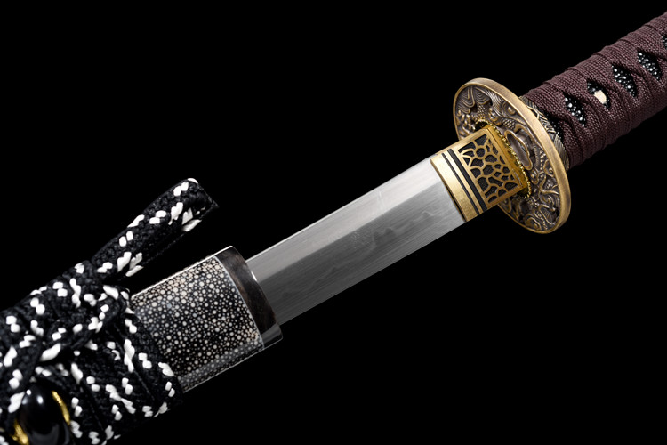 The fittings, meticulously crafted from pure copper, gleam with the warmth of settled moonlight. The scabbard, with a solid wood core sheathed in rare ray skin, possesses a deep, luxurious texture. The cord-wrapped solid wood hilt offers a historically authentic and secure grip. With an overall length of 103 cm and a weight of merely 1.1 kg, its elegant profile moves with the fluid grace of a moonbeam.
